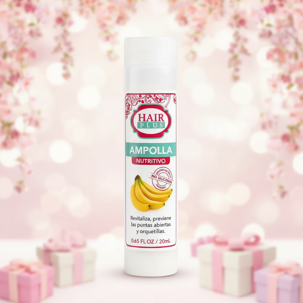 Ampolla: Hair plus ampolla is the best way to revitalize your hair; ideal for dried hair thanks to its ingredients such as aloe vera, melon, cinnamon, banana, purified water and indodextro-5.